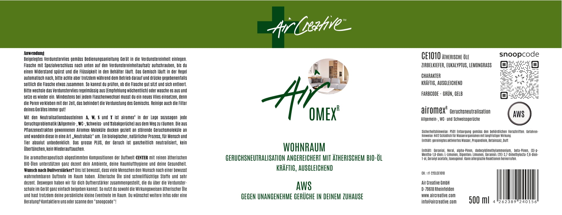 Airomexformel: AWS der Allrounder gegen negative Gerüche menschlicher Natur oder Ausdünstungen aus Materialien