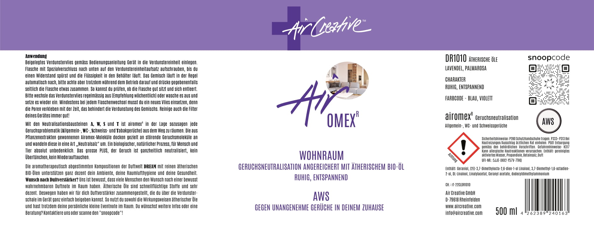 Airomexformel: AWS der Allrounder gegen negative Gerüche menschlicher Natur oder Ausdünstungen aus Materialien