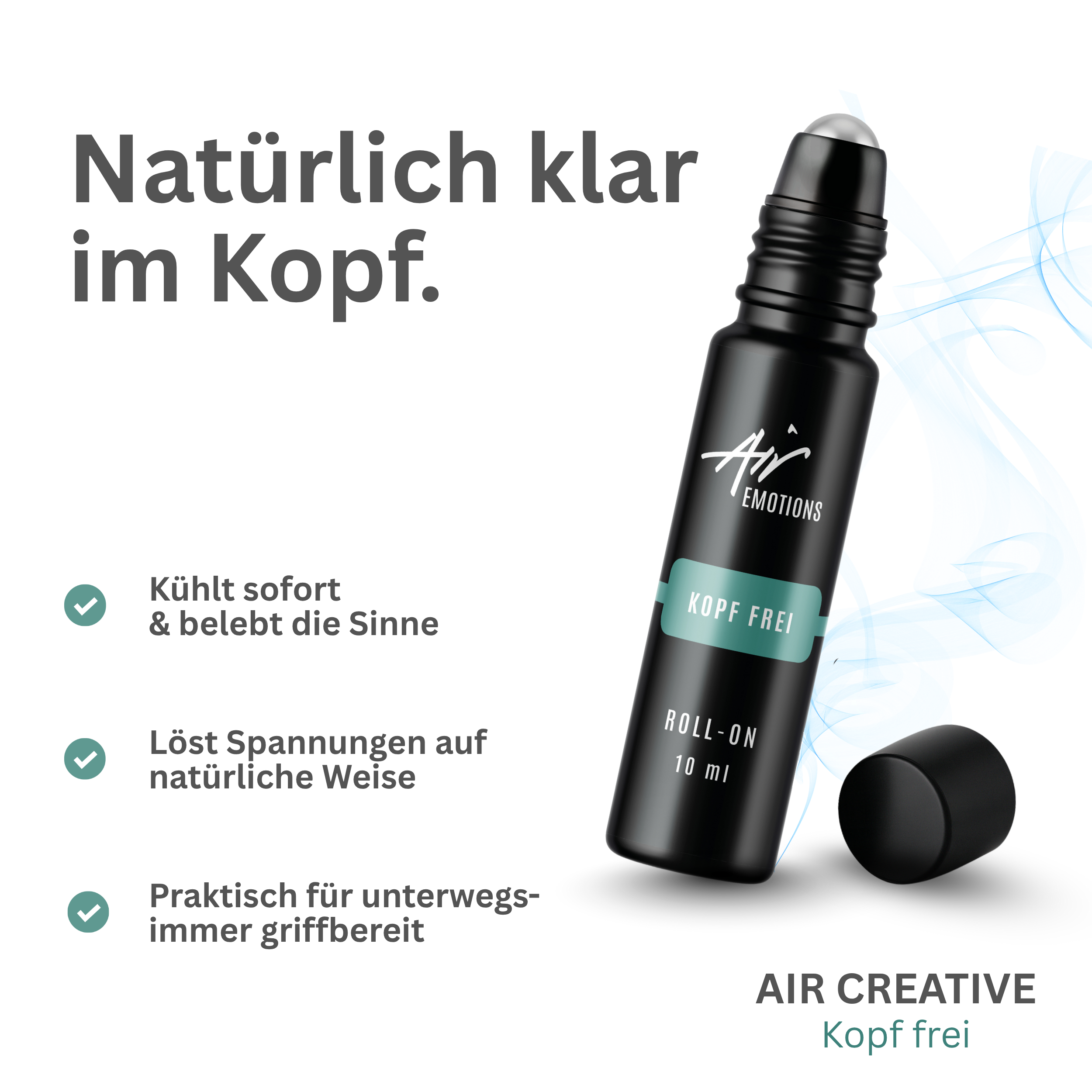 Befreie deinen Kopf auf natürliche Weise mit dem Air Creative Roll-On "Kopf frei" – dein Moment der Klarheit und Entspannung.