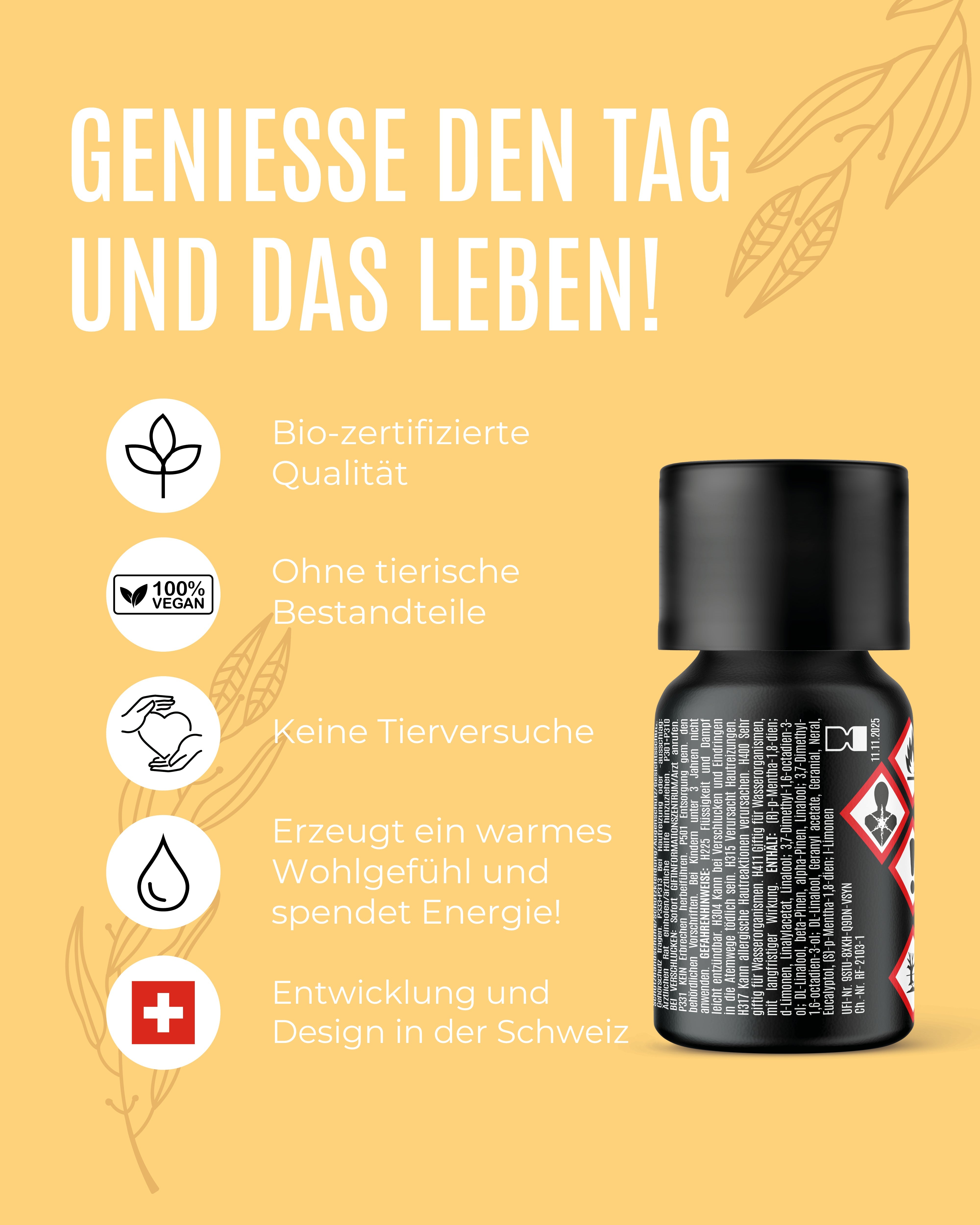 Duftbeschreibung: Ein lebendiger, fruchtiger Duft mit warmen Untertönen, der sofort die Stimmung hebt und gleichzeitig für emotionale Stabilität sorgt.