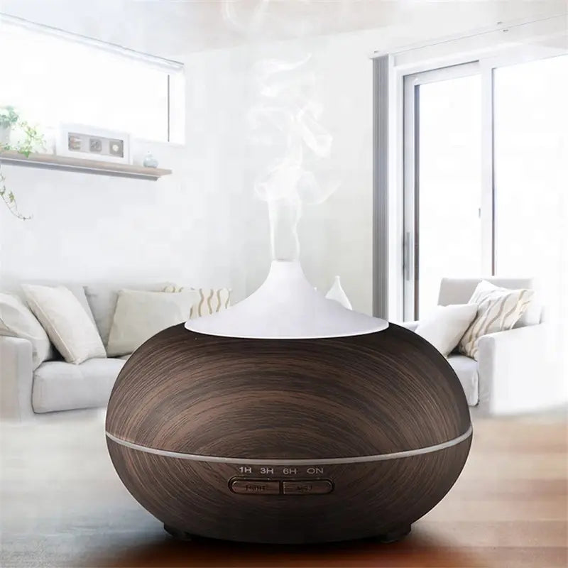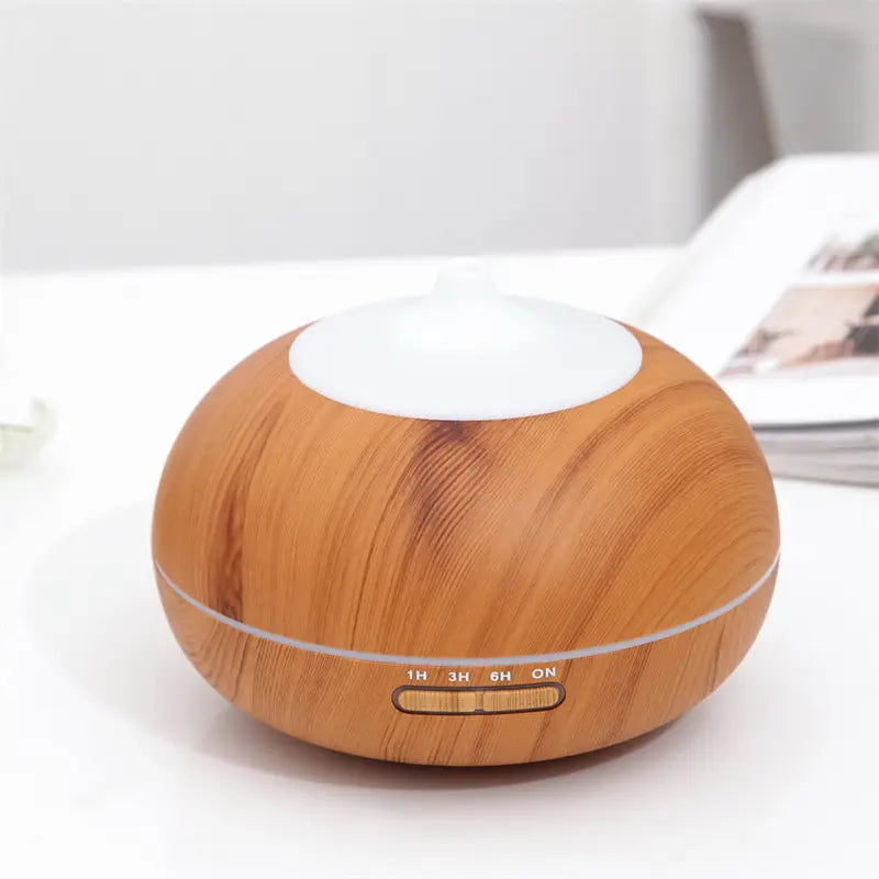Das obere Teil des Verneblers hat ein ansprechendes Holzdesign und fügt sich nahtlos in jeden Raum ein.Die Bedienung und Reinigung des Aroma Diffusers ist äußerst einfach. Sie füllen ihn einfach mit bis zu 500 ml Wasser und geben 12 bis 20 Tropfen eines hochwertigen ätherischen Öls oder einer Duftmischung Ihrer Wahl hinzu. Drücken Sie die "ON"-Taste, um das Gerät zu aktivieren, und wählen Sie den gewünschten Modus.