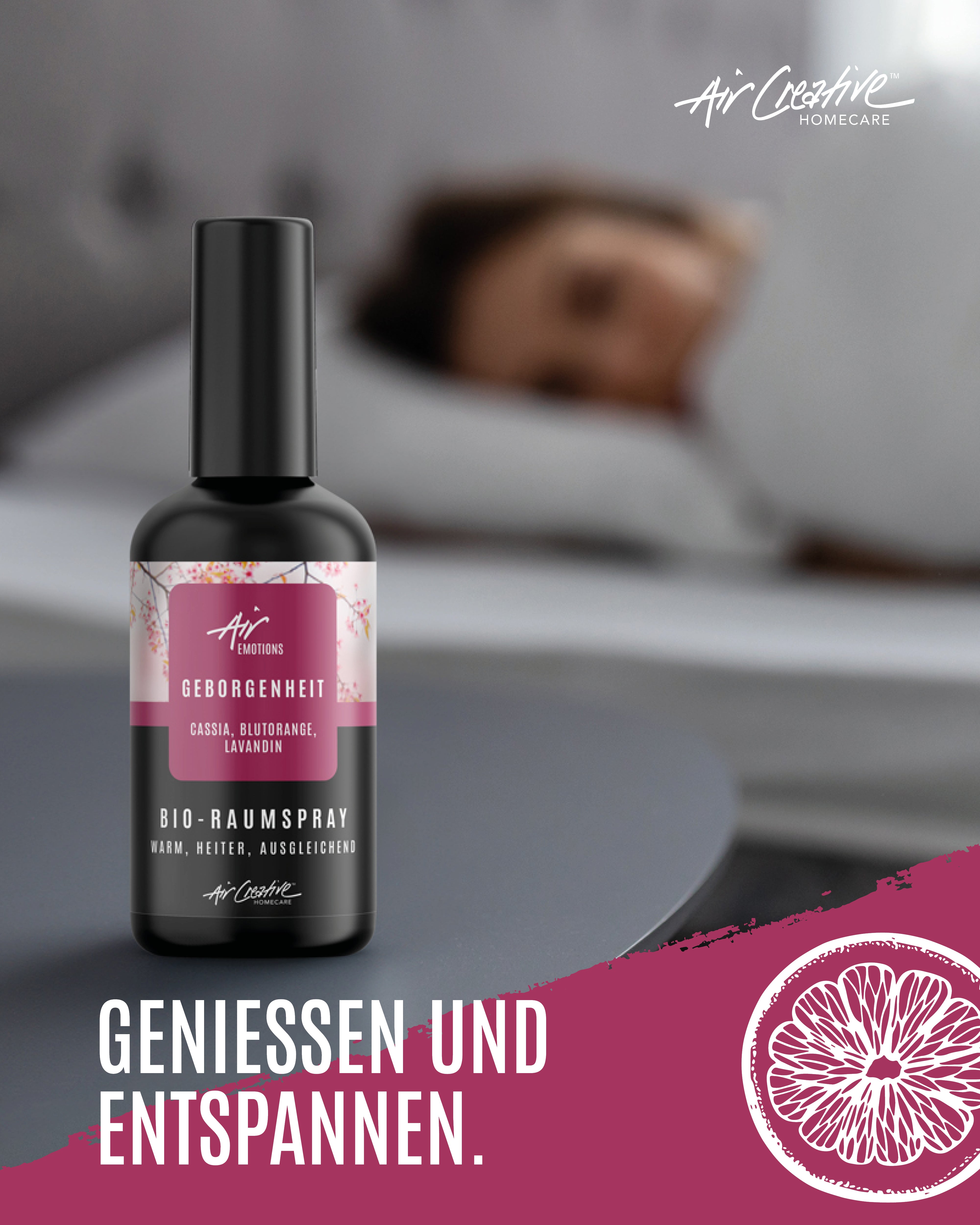 Ob in deinem Schlafzimmer, Wohnzimmer oder Arbeitsbereich – Unser AirEmotions Raumspray weckt in dir das Gefühl von Geborgenheit und verwandelt jeden Raum in einen Ort des Wohlgefühls. Erschaffe deine eigene kleine Insel der Geborgenheit, in der du Entspannung findest.